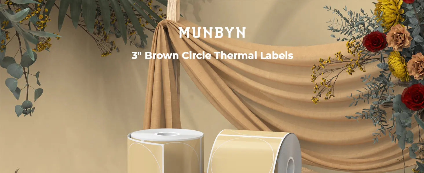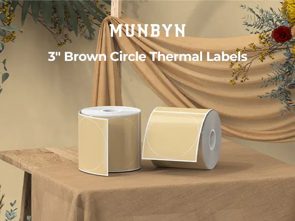 MUNBYN 3" Circle Direct Thermal Sticker Labels Brown/ White | 500 Labels Per Roll