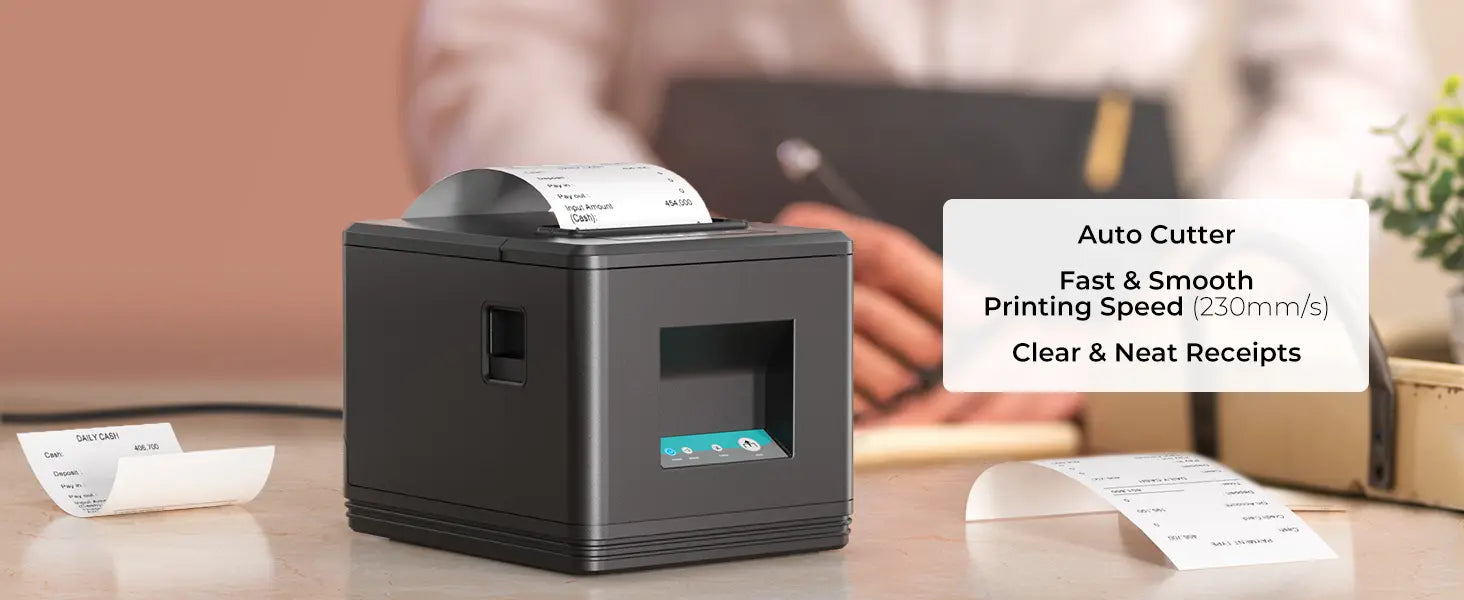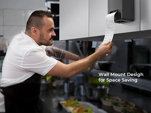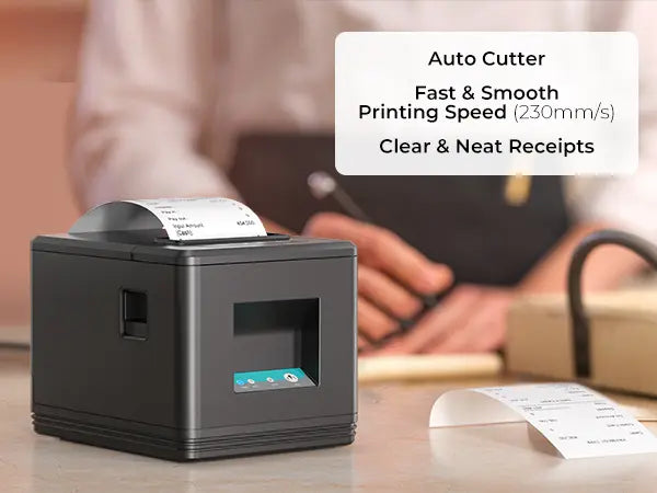 【Efficient Printing】 Features an auto-cutter and fast printing speed of 200mm/sec. The 80mm thermal printer supports wall mounting and offers easy paper installation and maintenance.