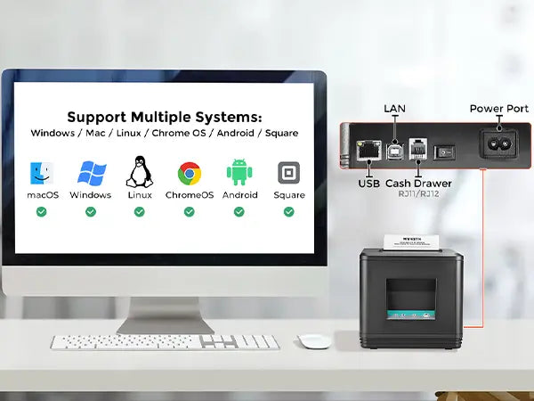 【Compatibility & Guidance】 Compatible with Windows based on ESC/POS command. Not compatible with iPad, iPhone, iOS devices, Square, Doordash, Uber, or GrubHub. Refer to the user manual for driver installation and usage instructions.