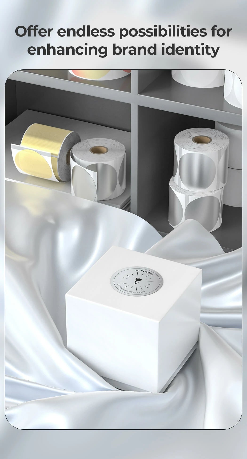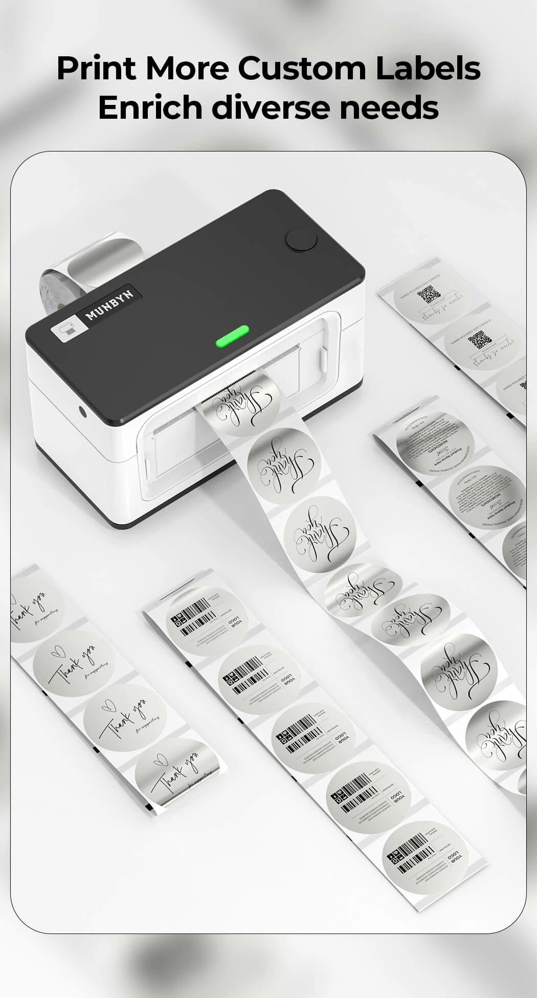 The glossy surface gives the label an elegant feel and enhances the visibility of your text and graphics. MUNBYN silver labels are engineered to adhere securely to many material types and are equally effective on flat and curved surfaces, such as bottles, jars, boxes, envelopes, and more.