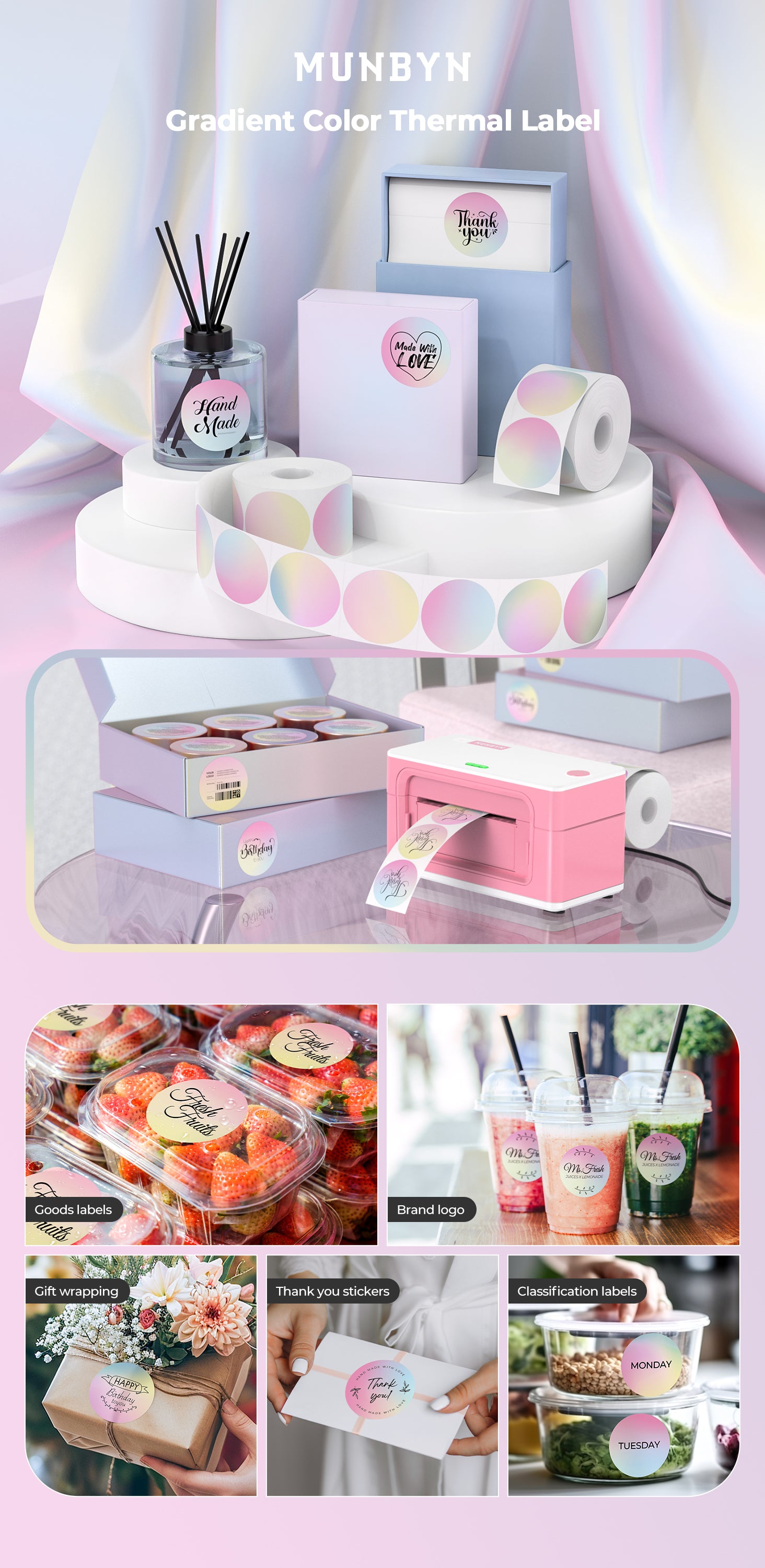 MUNBYN 2" Circle Colour Gradient 6 in 1 Thermal Sticker Labels