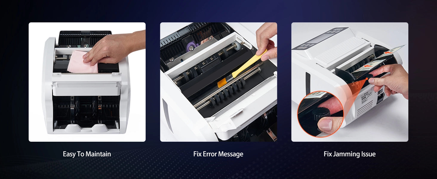 [Fast and Smooth] The IMC09 cash counter machine has a counting speed of 1000 banknotes per minute. Upgraded roller processing for old banknotes provides an advantage for counting creased banknotes. The currency counter can count up to 200 banknotes in a single run