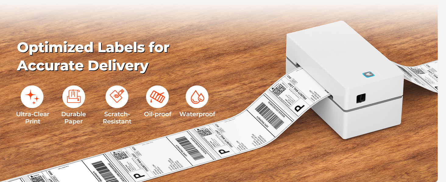 Our printers support a wide range of direct thermal labels, including 4×6" shipping labels, 3×2", 2×1", barcode labels, round labels, and custom sticker sizes (40–110mm width depending on the model).