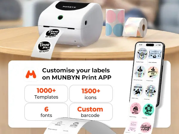 - Lifetime Technical Support: MUNBYN customer service team is available to assist you via phone, live chat, email, and remote desktop support, ensuring quick setup and hassle-free operation. Our Royal Mail label printer comes with lifetime technical support, giving you peace of mind.