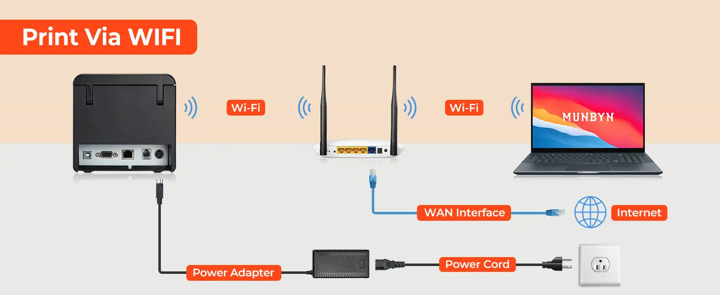 7% OFF【Latest MUNBYN WiFi Model】: Wirelessly connect your POS system with WiFi, freeing you from the constraints of traditional USB-wired connections and elevating your business.