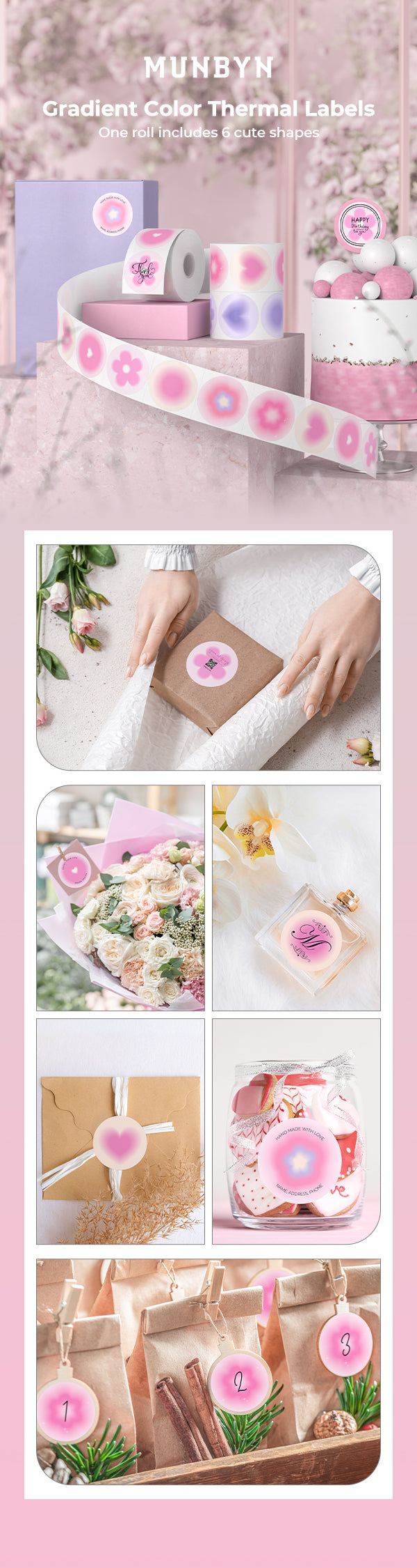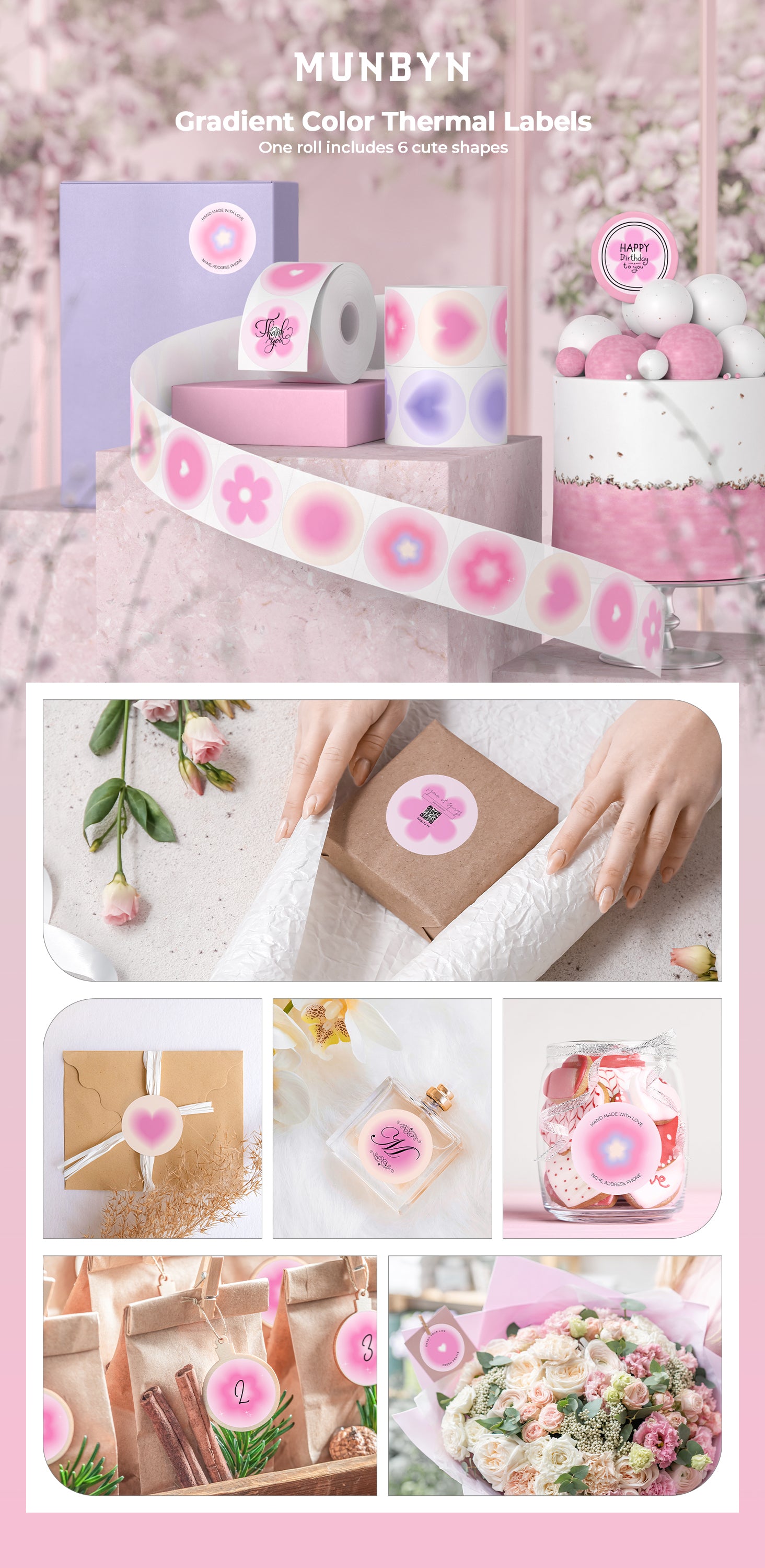 MUNBYN 2" Circle Pink Gradient 6 in 1 Thermal Sticker Labels