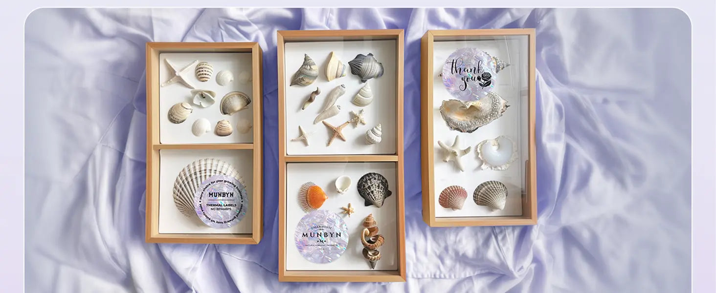 - Texture Thermal Label: Munbyn thermal labels make your packaging more outstanding. Different angles show the shine of the shell texture. Enhance your labeling experience with the 2-inch round shell texture thermal print labels.