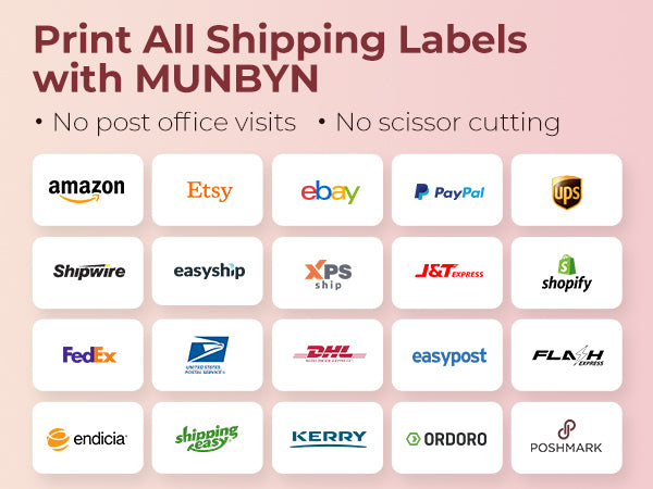 The MUNBYN RW401AP AirPrint shipping label printer is compatible with a wide range of shipping labels from various carriers. Whether you're printing labels for UPS, FedEx, USPS, or other shipping providers, this printer has you covered. Enjoy fast, efficient, and hassle-free printing for your small business needs.